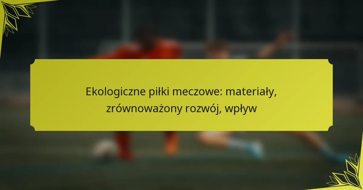 Ekologiczne piłki meczowe: materiały, zrównoważony rozwój, wpływ